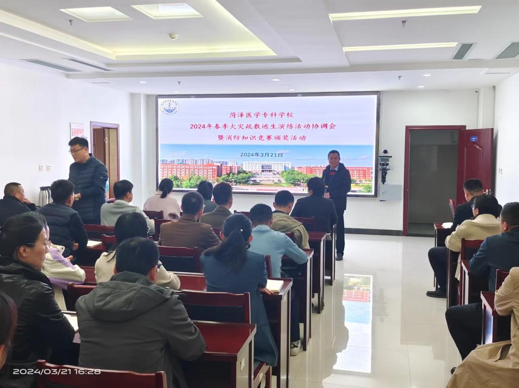 为确保学校春季火灾疏散逃生演练秩序正规、圆满完成,3月21日16时我校召开了2024年春季火灾疏散逃生演练活动协调会,并对前期参加消防知识竞赛的优秀个人进行颁奖,校党委委员、副校长代爱英,安管处、学工处、教务处、团委、总务处等部门人员,共60余人参加活动。