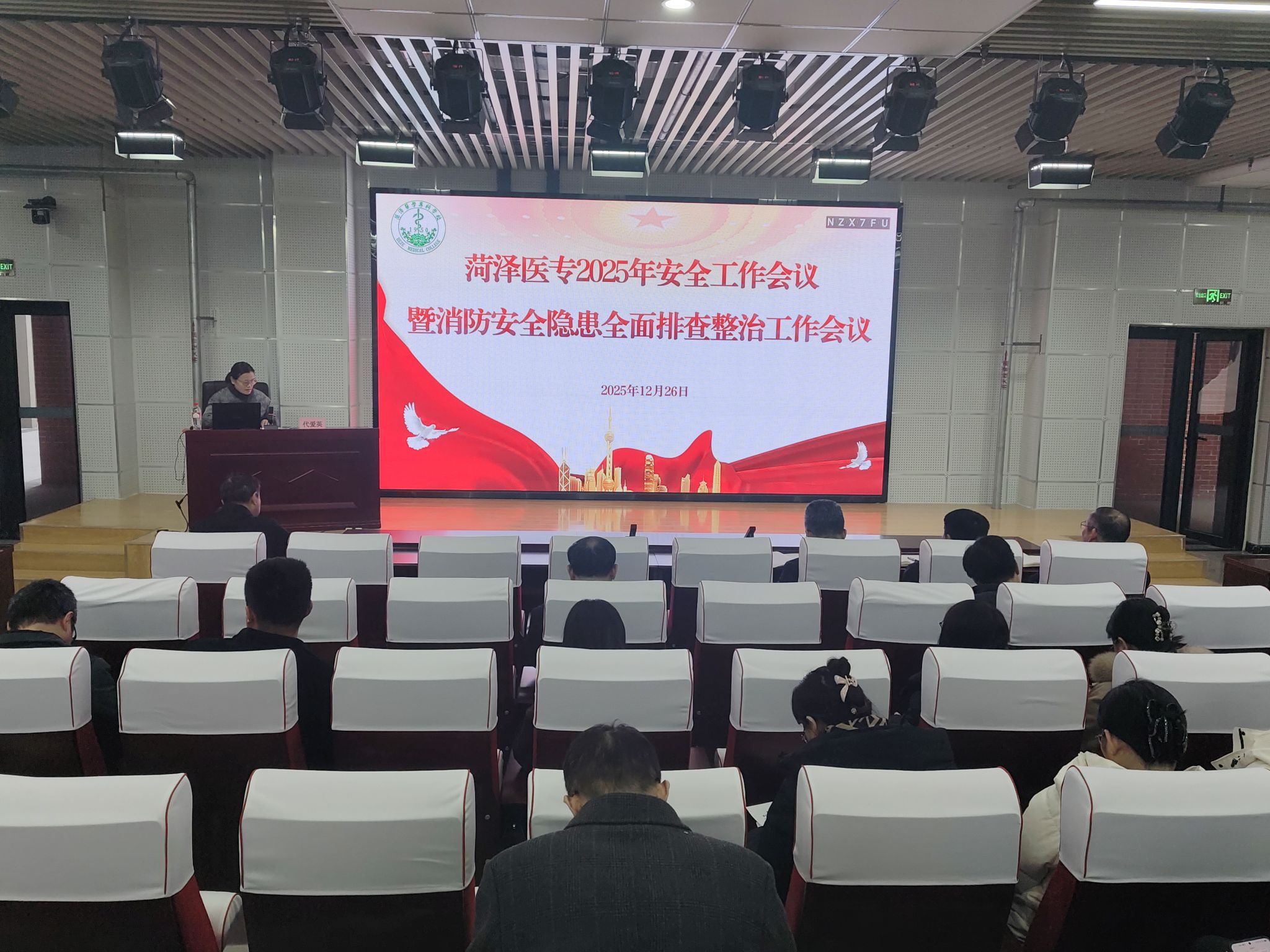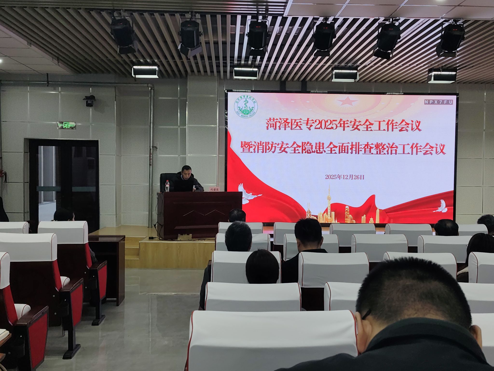 为落实山东省教育厅关于开展重大火灾风险隐患排查整治专项行动要求,全面消除校园消防安全隐患,确保今冬明春校园安全形势稳定,12月26日下午,我校在办公楼1楼报告厅召开2025年安全工作会议暨消防安全隐患全面排查整治工作会议。校党委委员、副校长代爱英主持会议,各二级部门党政负责人及安全管理员参会。