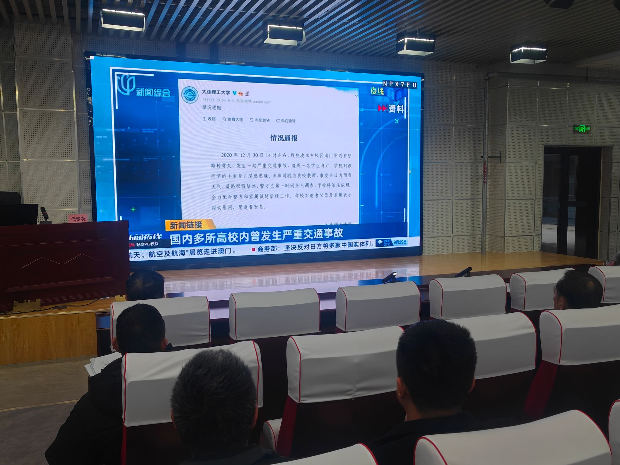 会议首先组织观看了“高校校园火灾警示片”和“校园交通事故案例”。安全管理处负责人通报了近年高校火灾及交通安全事故案例,分析其成因特点,并传达上级文件精神及我校新修订的安全管理文件。