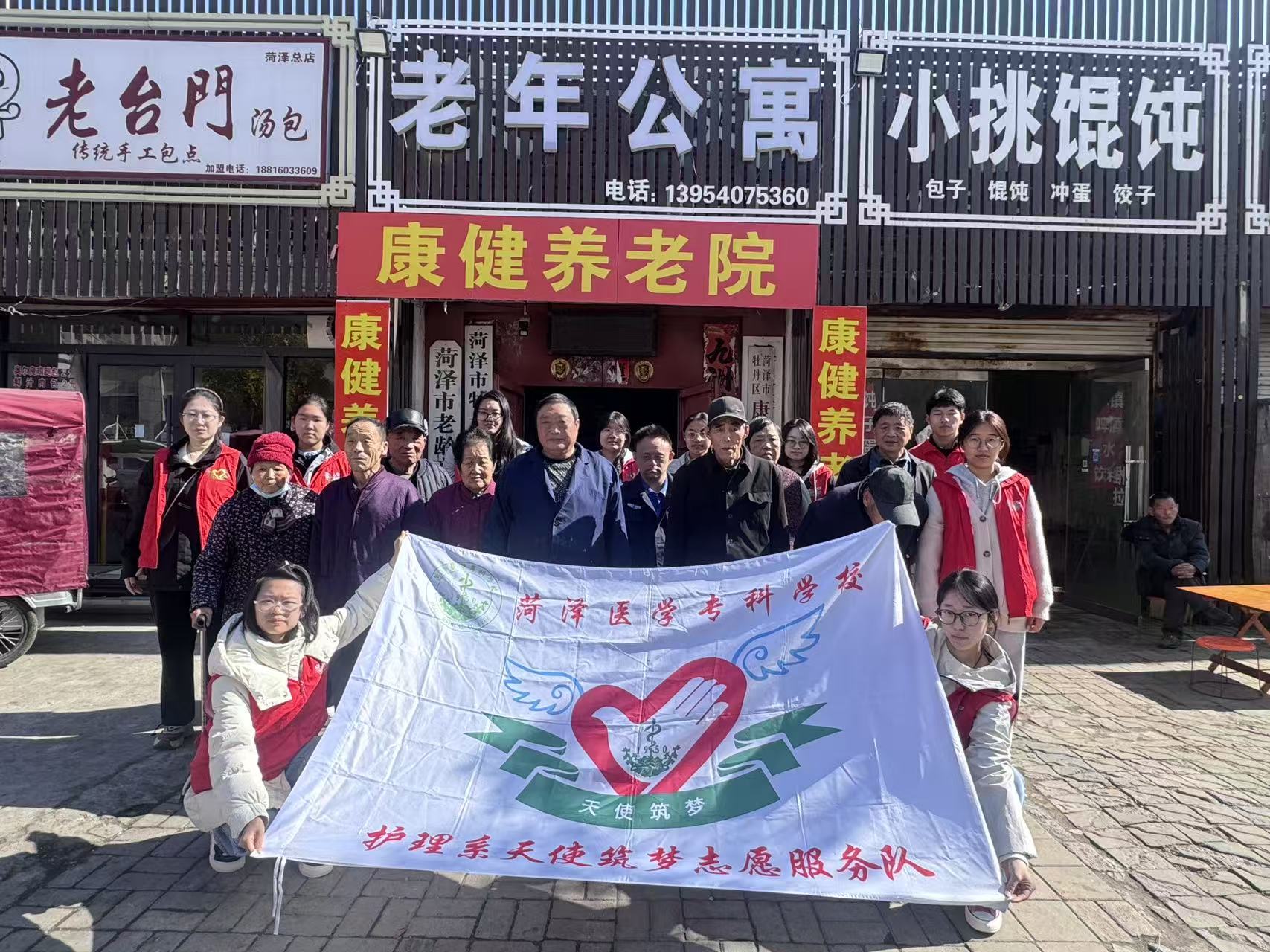 为进一步服务社区、关爱老年群体,在重阳节来临之际,菏泽医学专科学校天使筑梦志愿者服务队走进康健老年公寓,开展了一场以“情满重阳·爱满夕阳”为主题的关爱老人志愿活动。本次活动共有20余名志愿者积极参与。