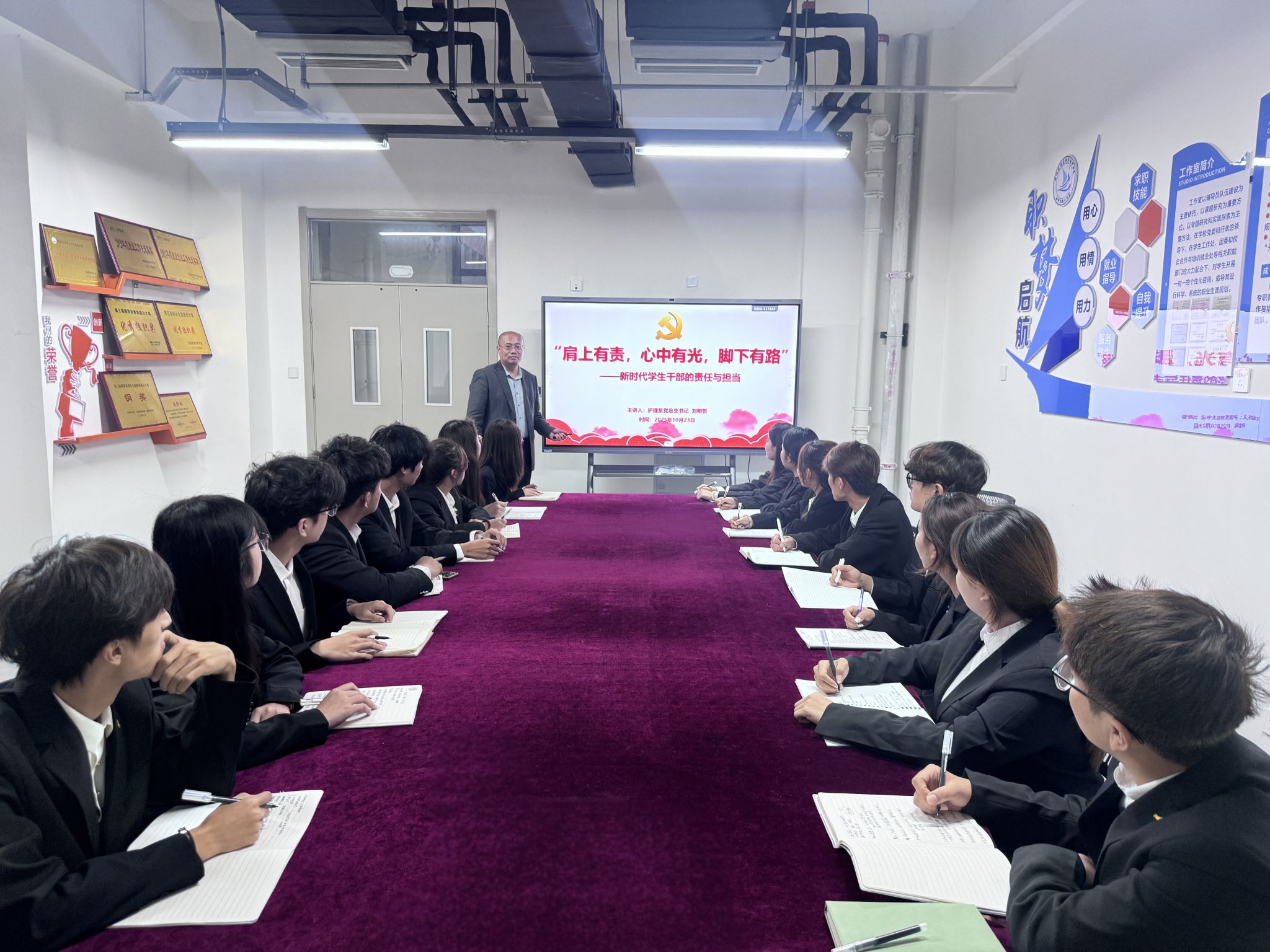 刘明哲强调学生干部要摆正位置,当好“服务者”而非“管理者”,争做“领头雁”而非“孤行者”,发挥好“桥梁纽带”作用,并努力成为“学习者”和“实践者”的统一体,在服务中学习,在实践中成长。