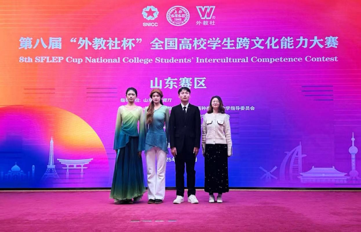 11月1日,第八届“外教社杯”全国高校学生跨文化能力大赛山东省省赛在山东外贸职业学院圆满落幕。由我校2025级临床公费学生张政、口腔专业学生胡钰菲和中医公费学生许悦组成的代表队,凭借扎实的跨文化理论基础、创新的案例分析视角与出色的现场表达能力,在众多参赛高校中脱颖而出,以第二名佳绩斩获一等奖。李文双老师和刘涵老师荣获优秀指导教师奖。
