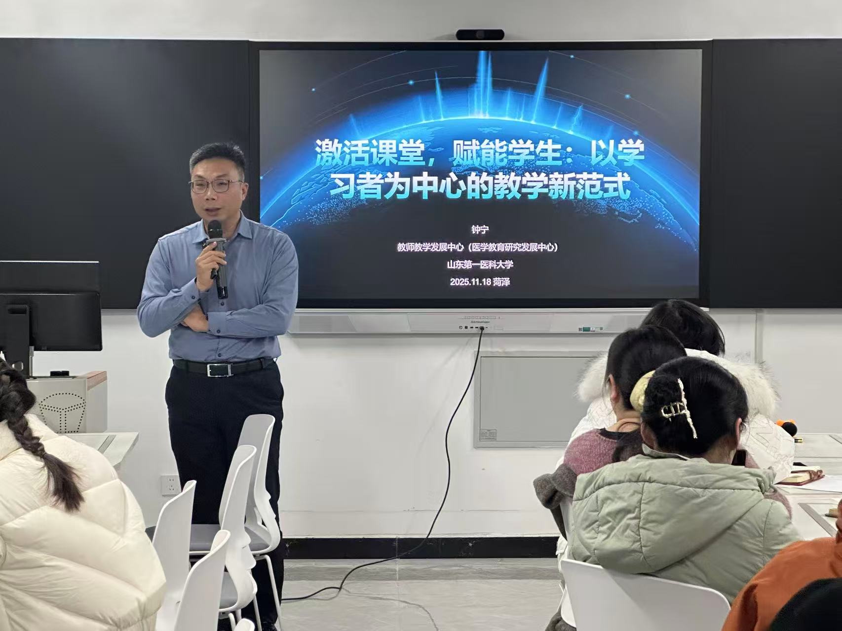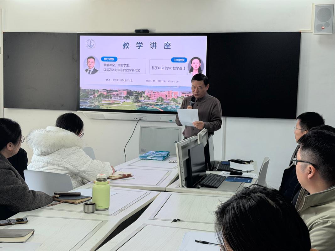 蒋继国在致辞中强调,课堂是人才培养的主阵地,教师是教学改革的核心力量,面对新时代教育发展需求,打破传统教学模式、探索以学生为中心的教学新范式是提升人才培养质量的关键。此次专题讲座聚焦“激活课堂”与“成果导向”两大核心主题,既是对我校教学改革实践的精准赋能,也是为骨干教师搭建的学习交流平台,希望全体教师珍惜学习机会,认真吸收前沿理念,将所学所悟转化为教学实践,切实推动课堂教学从“知识传递”向“能力培养”“价值塑造”转变,为学校育人事业高质量发展夯实根基。