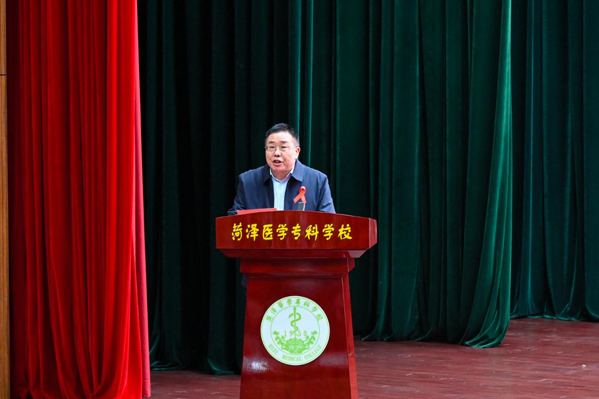 11月28日上午,在第38个“世界艾滋病日”到来之际,由菏泽市卫生健康委员会、菏泽市疾病预防控制中心主办,菏泽市传染病医院和我校承办的“2025年世界艾滋病日主题宣传活动暨校园防艾同伴教育项目推广启动仪式”在泰山路校区报告厅举行。
