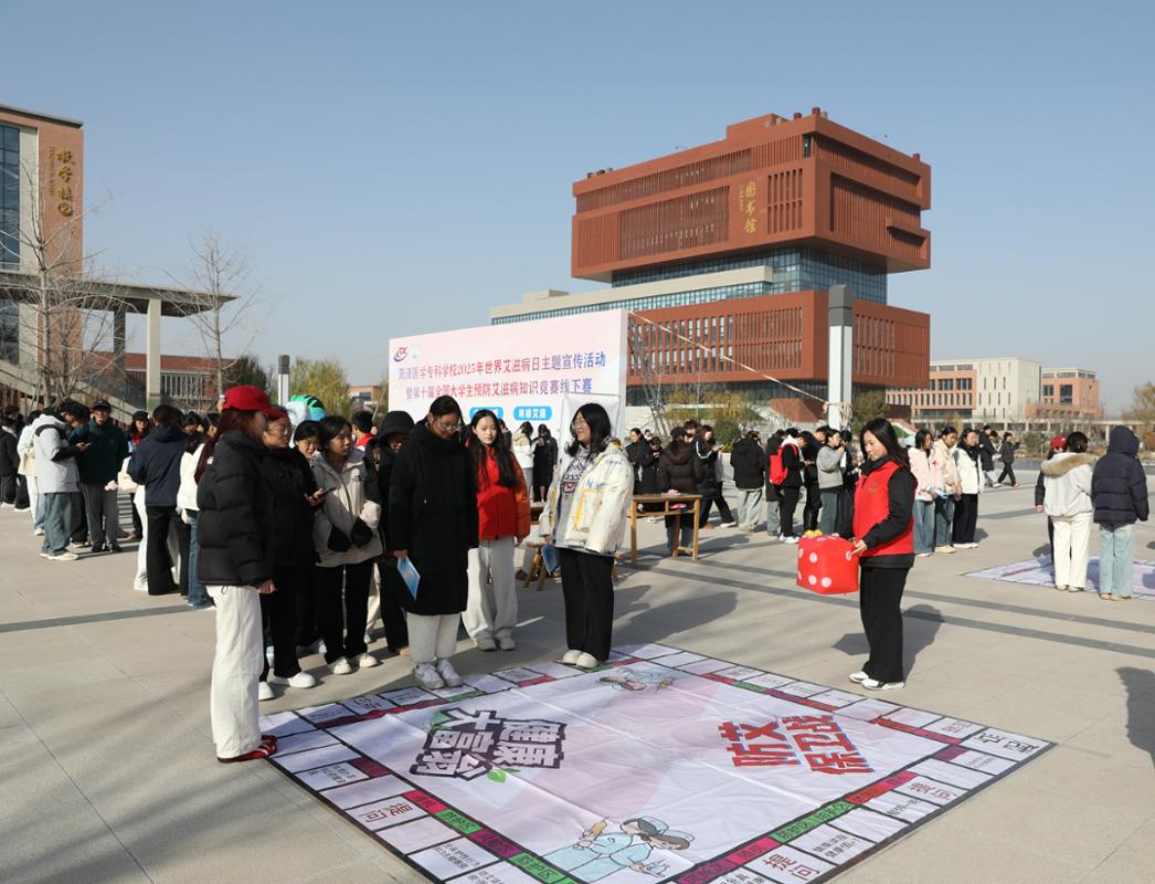 仪式结束后,护理系天使筑梦志愿服务队在学校济世广场举办第十届全国大学生预防艾滋病知识竞赛线下赛。活动将知识普及与趣味互动相结合,同学们通过参与艾滋病防治知识问答,巩固了对核心知识的掌握,在轻松愉快的互动游戏中加深了对防艾理念的理解。活动现场气氛热烈,学生们参与踊跃。
