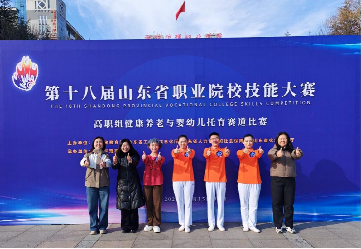 12月19日,第十八届山东省职业院校技能大赛健康养老与婴幼儿托育赛道比赛在潍坊落幕,由郭佳、袁涵、公玮瑜、王鹏凯(指导教师:赵霞、郭晓慧)组成的团队斩获金奖。