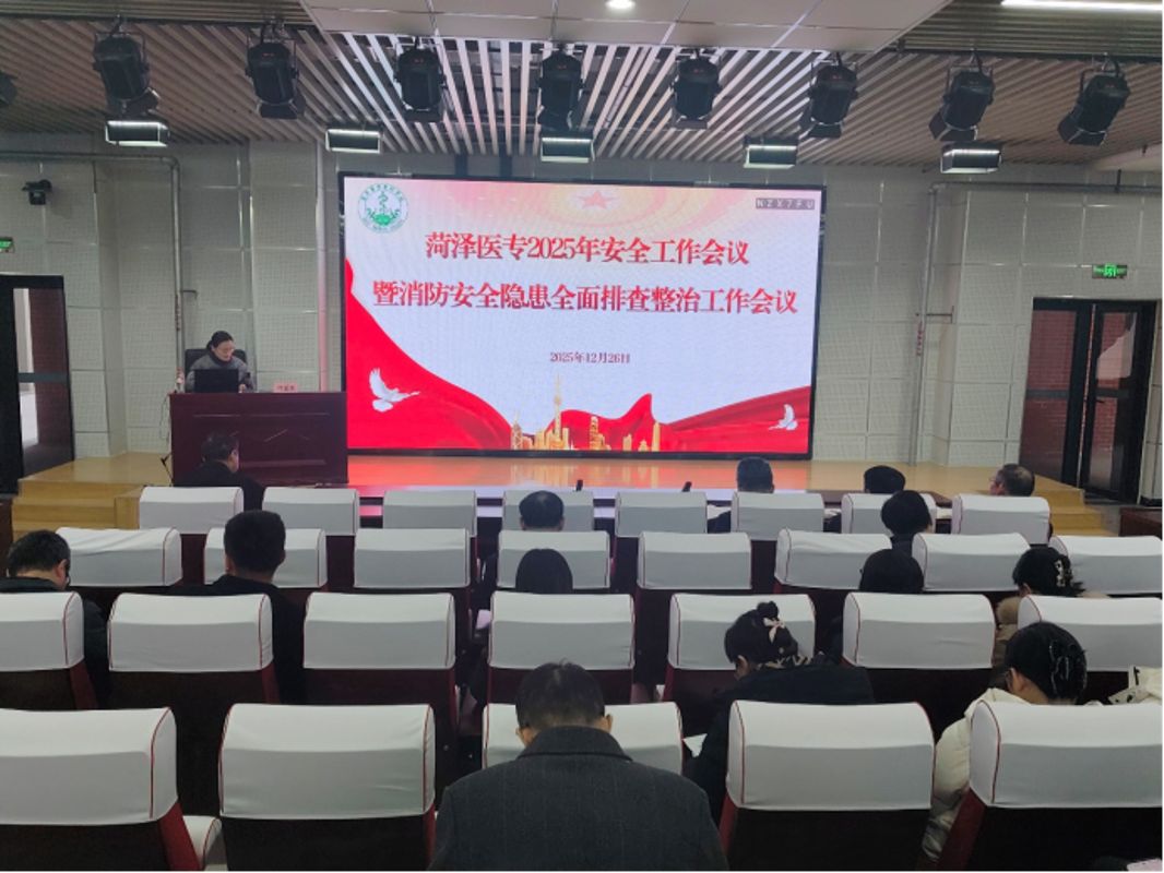 为落实山东省教育厅关于开展重大火灾风险隐患排查整治专项行动要求,全面消除校园消防安全隐患,确保今冬明春校园安全形势稳定,12月26日下午,我校在办公楼1楼报告厅召开2025年安全工作会议暨消防安全隐患全面排查整治工作会议。校党委委员、副校长代爱英主持会议,各二级部门党政负责人及安全管理员参会。