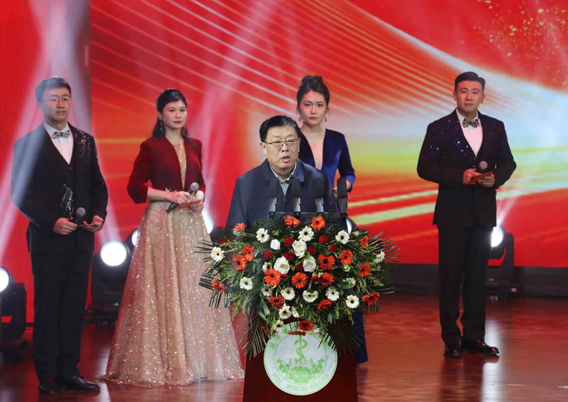 整场晚会节目丰富、精彩纷呈。民舞《青山远黛》舞姿优美,离退休教师表演的《太极扇》刚柔并济;情景剧《我站立的地方是中国》动人抒怀,相声《辅导员那些事儿》风趣暖心。歌曲串烧、合唱、现代舞、民族风情表演等轮番上演,展现出师生多样的才华与昂扬的面貌。朗诵《医魂永铸 再续华章》以铿锵之声回顾学校七十五载征程,将晚会推向高潮。