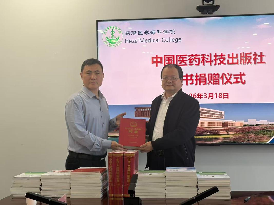 会上还举行了图书捐赠仪式,中国医药科技出版社向我校无偿捐赠了包括《中华人民共和国药典》在内的系列精品教材。