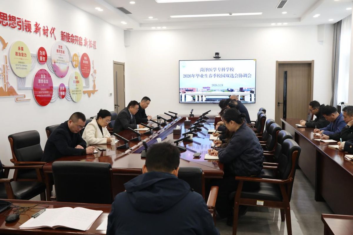 会上,校企合作与培训就业处处长王学贺介绍本次双选会的前期筹备工作及单位报名情况,并对《菏泽医学专科学校2026年春季校园双选会实施方案》进行解读,重点就招聘单位接待流程、现场服务保障、突发事件应急处置及宣传报道等工作,明确各责任部门的具体分工和时间要求。