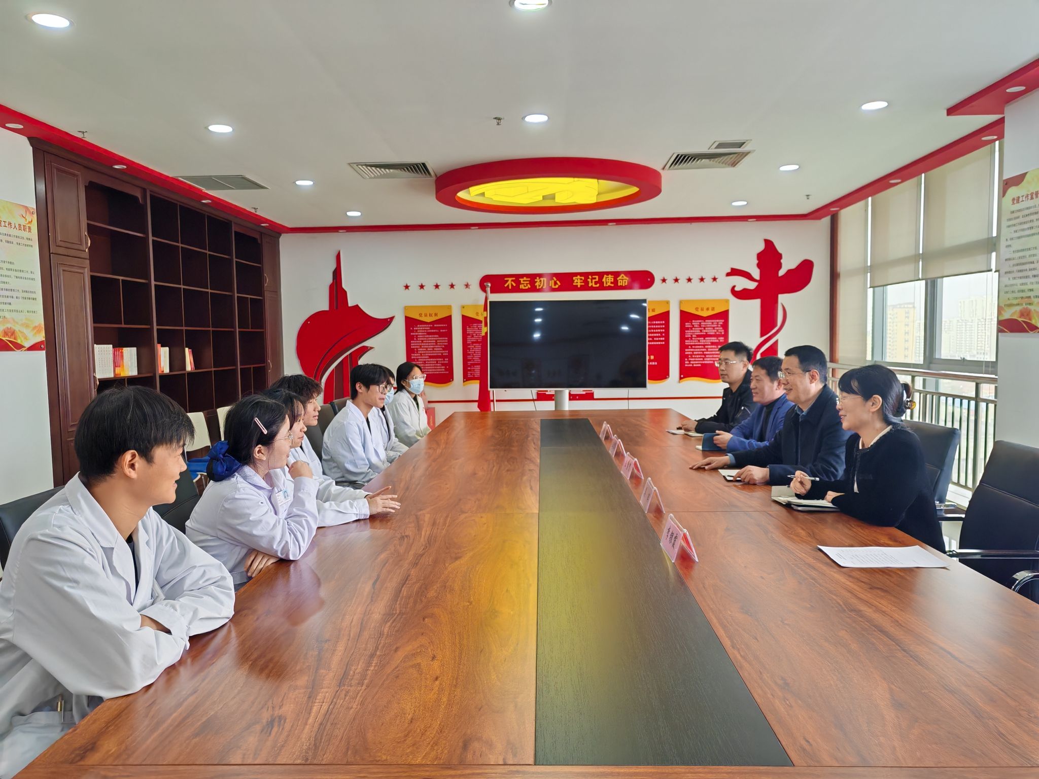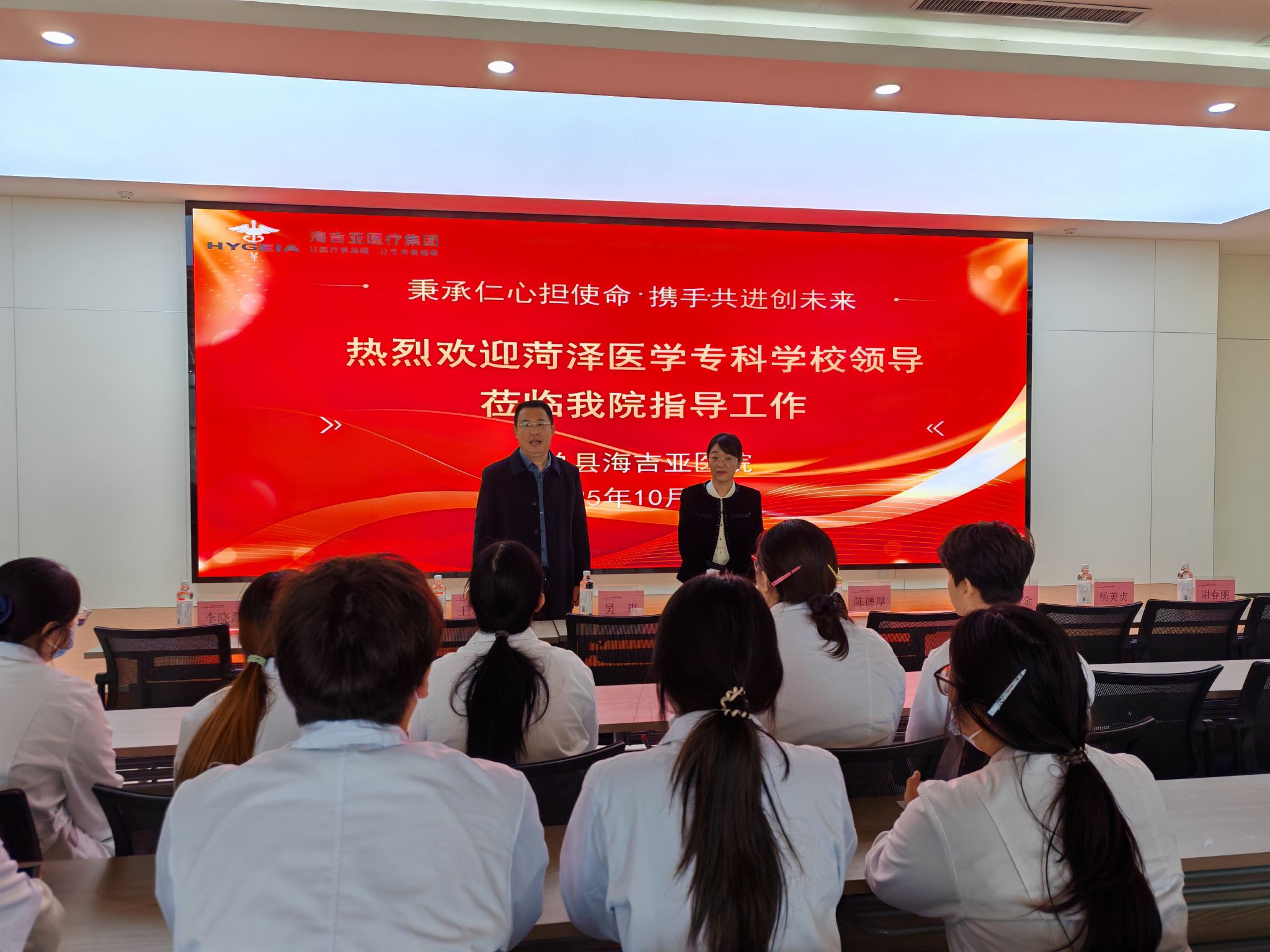 调研组先后走访单县海吉亚医院、单县中心医院、单县东大医院和东明县人民医院。座谈会上,王学贺感谢各医院对实习工作的支持,介绍学校发展规划及 2026 届毕业生情况;双方围绕合作模式升级、实习就业基地共建、人才协同培养等议题深入交流。