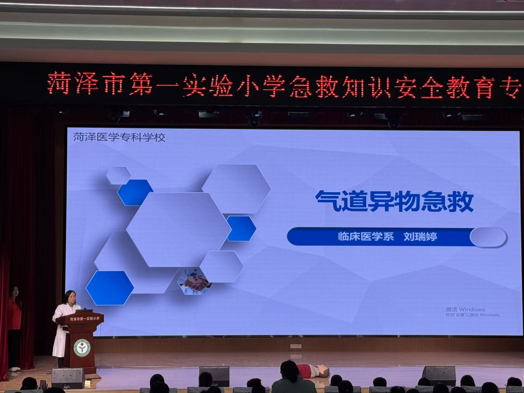 为积极响应“健康中国2030”战略号召,切实推动急救知识普及进校园,筑牢青少年生命安全防线,11月4日,我校临床医学系“急救天使”志愿服务队师生一行走进菏泽市第一实验小学中山路校区,开展以“普及急救知识,点燃希望之火”为主题的急救技能专项培训活动。本次培训由临床医学系内科学教研室副主任、第一党支部党员刘瑞婷副教授担任主讲,为该校300余名师生带来一堂兼具专业性与实用性的生命安全课程。