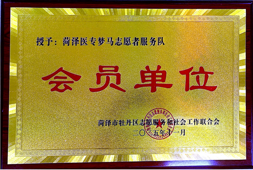 近日,临床医学系梦马志愿者服务队获批成为菏泽市牡丹区志愿服务和社会工作联合会会员单位。此项荣誉,是对服务队长期以来在公益服务领域持续深耕、积极奉献的充分肯定。