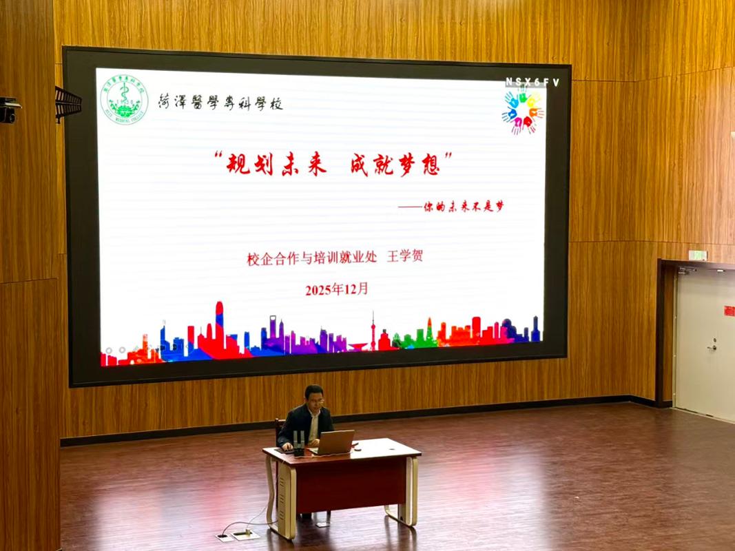 为全面提升学生综合素养与职业发展能力,帮助学生明晰成长路径、找准前行方向,12月24日,护理系邀请校企合作与培训就业处处长王学贺开展医学生发展专题讲座。讲座以“规划未来 成就梦想”为核心主题,聚焦见习实习、学历提升与就业指导三大关键领域,同时兼具指导性与实用性,为学生提供了系统而实用的成长参考。