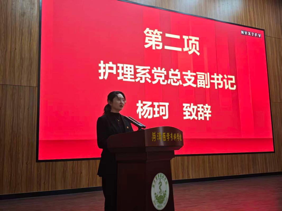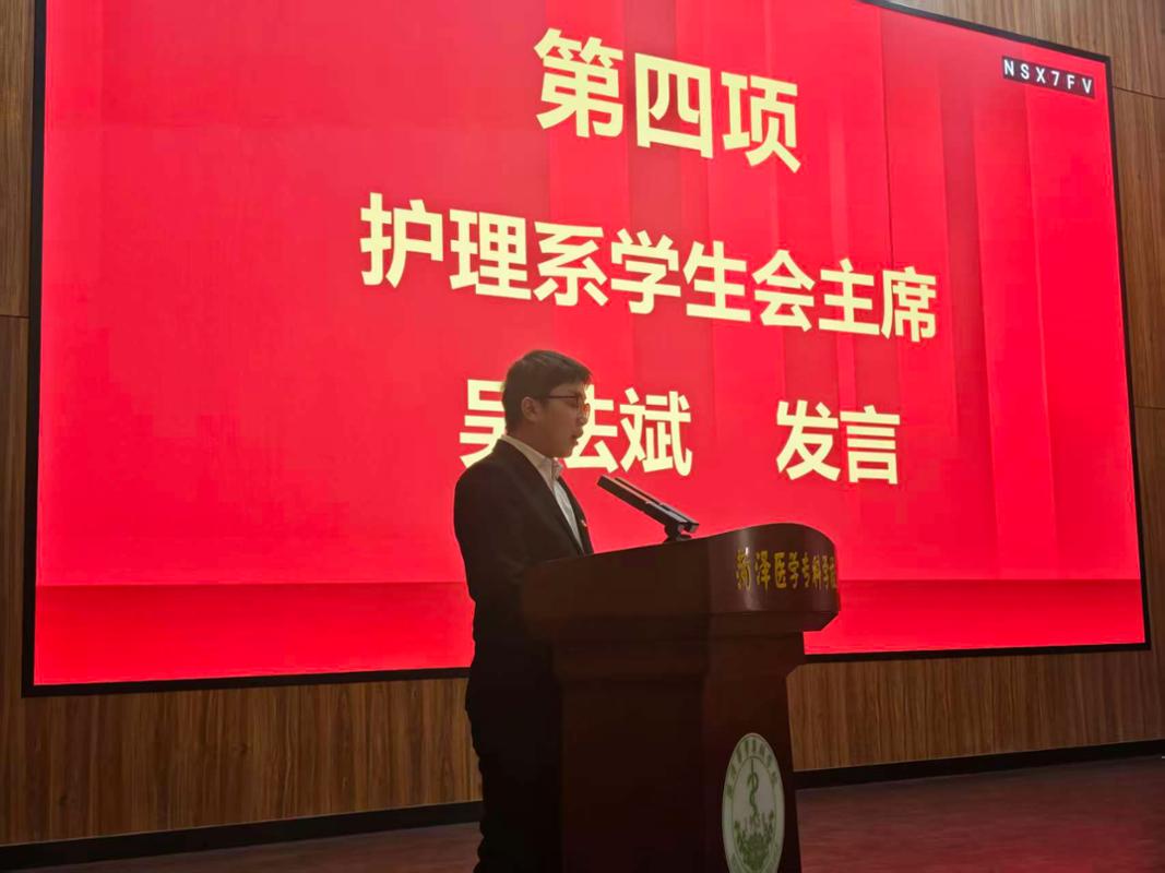 护理系学生会主席吴法斌作为学员代表发言。他表示,全体学员将深刻认识自身肩负的责任与使命,以此次培训为契机,在理论学习中坚定理想信念,在实践磨砺中提升综合能力,主动为学校与系部发展贡献青春力量。