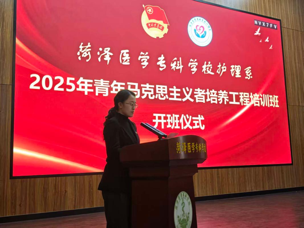为深入学习贯彻习近平新时代中国特色社会主义思想,强化青年学生思想政治引领,着力培养政治坚定、素质全面的青年骨干力量,12月25日,护理系隆重举行2025年青年马克思主义者培养工程培训班开班仪式。护理系党总支副书记杨珂、团总支书记康多娇、团总支副书记马雅琳、全体专职辅导员及2025年青马培训班全体学员参加仪式。仪式由护理系团总支宣传委员李新宇主持。
