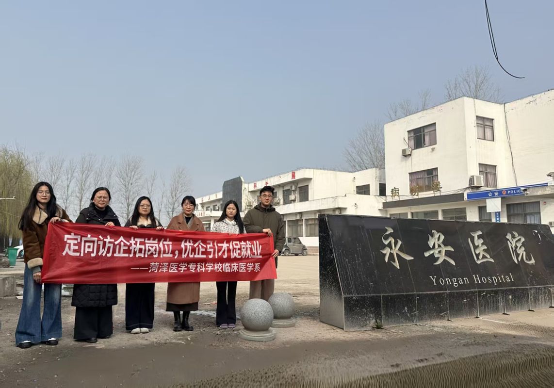 为深入贯彻落实省教育厅及学校关于2026届毕业生就业工作的总体部署,积极响应“优企引才”号召,3月17日,临床医学系党总支书记吴琪一行六人赴菏泽孝和护理院、郓城永安医院开展访企拓岗专项调研。