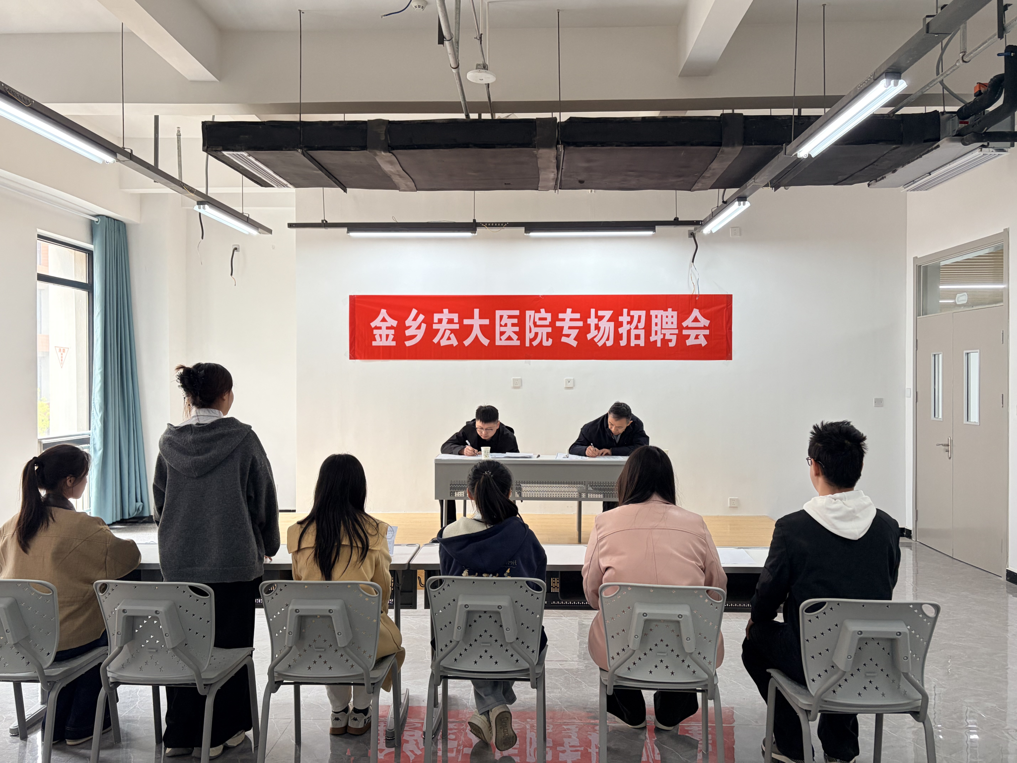 会后,曲阜市精神卫生中心与金乡宏大医院在二楼临床实训中心 209、211 室同步开展现场宣讲及结构化面试,70 余名毕业生积极参与。用人单位与同学们面对面沟通岗位需求、职业发展与薪资待遇,现场氛围热烈融洽,最终7名学生达成初步就业意向。