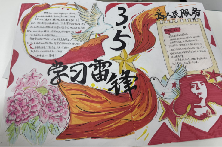 “学雷锋 树新风”主题板报活动中,各班级积极参与,充分发挥想象力与创造力,同学们分工负责排版、绘画、书写,将雷锋头像、雷锋语录、雷锋故事以及新时代学雷锋志愿服务场景融入板报设计中,版面设计新颖、内容丰富详实、色彩鲜明生动。一幅幅精心制作的板报,不仅展现了同学们的动手能力与创新思维,更成为校园里一道亮丽的风景线,让同学们在创作过程中深入学习雷锋精神,在潜移默化中接受思想熏陶,进一步营造了“人人学雷锋、时时学雷锋、处处学雷锋”的校园氛围。