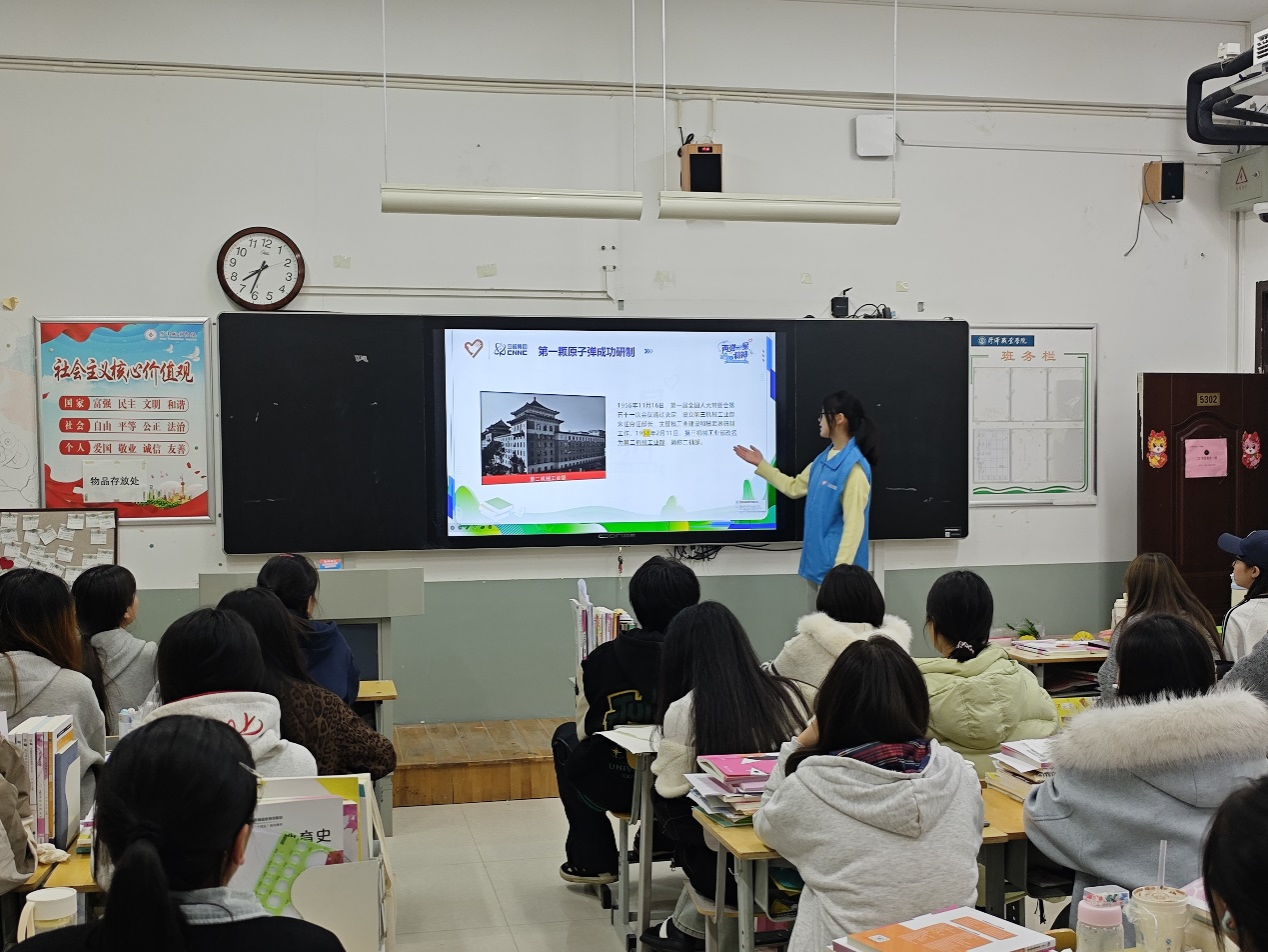 自2025年9月入选团中央联合中核集团组织的全国大学生“两弹一星”精神宣讲团以来,宣讲团在系团总支的指导下,精心拟定宣讲方案,紧扣“热爱祖国、无私奉献,自力更生、大力协同、勇于攀登”的精神内核,在三个多月的时间里,累计开展15场专题宣讲,足迹覆盖大中小学校园、社区及养老机构,服务群众近2000人次。