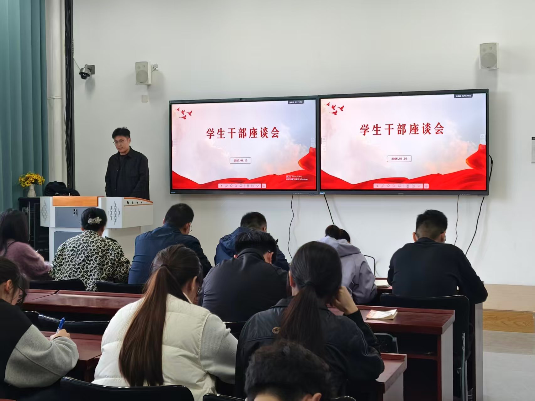 经验分享结束后,田文革以学生干部能力提升为主题开展专题培训,她着重强调学生干部要勤于反思、善于总结,在工作中积极展现自我、主动担当作为,不断提升服务意识与综合能力。最后,田文革勉励全体学生干部以本次交流会为新起点,总结经验、补足短板,以更饱满的热情投入到新学期工作中,并为同学们加油鼓劲。会议在积极热烈的氛围中圆满结束。