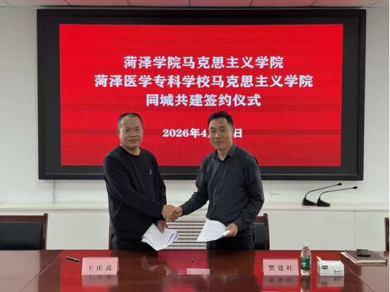 为深入贯彻落实新时代高校思想政治工作要求,扎实推进马克思主义学院内涵建设,深化区域高校思政教育协同发展,凝聚立德树人强大合力,4月17日,我校马克思主义学院(以下简称“菏泽医专马院”)与菏泽学院马克思主义学院(以下简称“菏泽学院马院”)联合举行院际共建签约仪式。仪式在菏泽学院马院举行,菏泽学院、菏泽医专马院相关负责人及教师代表参加仪式。
