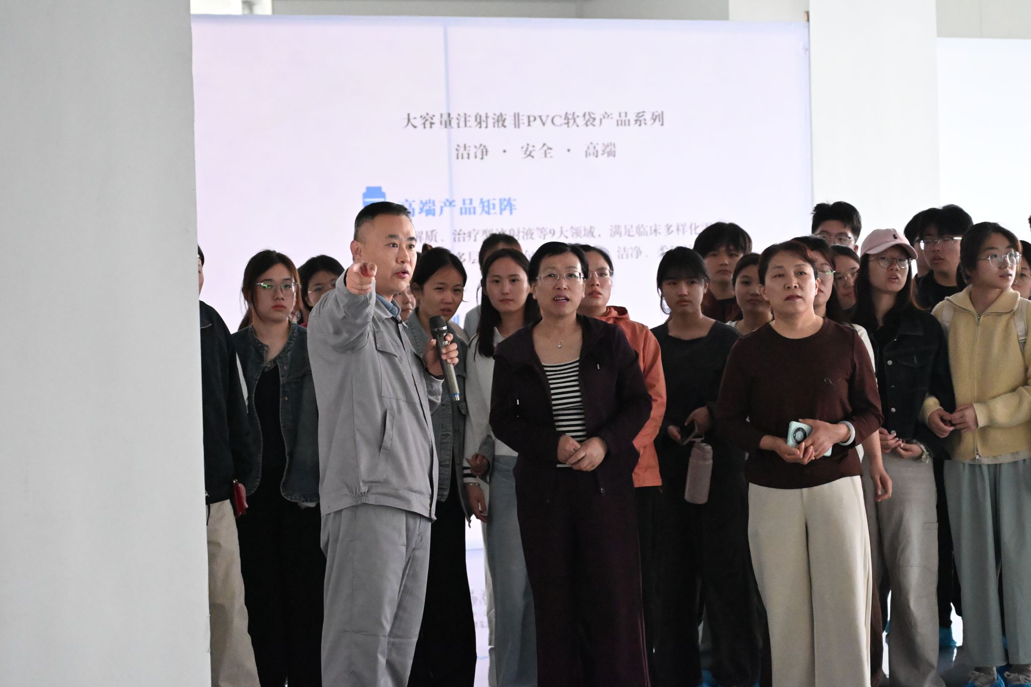 沈药集团合泽药业相关工作人员全程陪同讲解,带领师生依次走进药品生产车间、质检区域,近距离观摩注射剂从原料投料、药液配制、高温灭菌到成品包装、质检入库的全自动化生产流程,详细讲解企业严苛的药品生产规范、质量管控标准以及医药行业从业要求,让在场师生走出课本课堂,沉浸式感受现代化医药生产模式与严谨的行业准则,切实加深了对专业岗位与行业发展的认知。