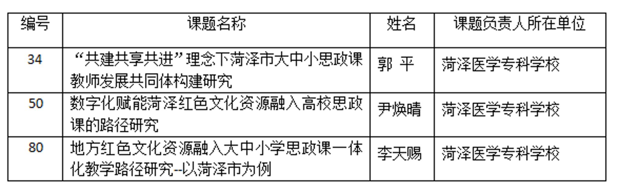 近日,菏泽市首届大中小学思政课一体化建设研究课题立项名单公布,我校马克思主义学院教师郭平、尹焕晴、李天赐申报的课题获批立项,斩获佳绩。