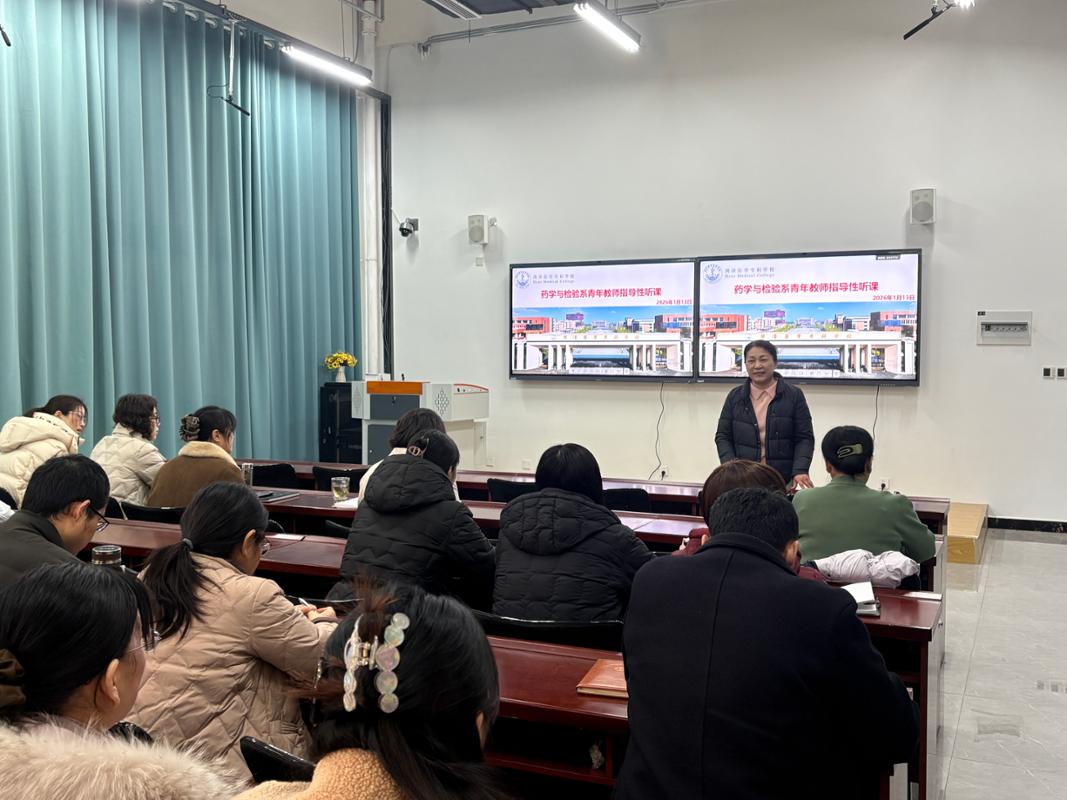 为夯实青年教师教学基本功,提升课堂教学质量,1月13日上午,药学与检验系组织开展2025-2026学年第一学期青年教师指导性听课活动,系部党政负责人、各教研室实验室主任以及高级职称教师参与听课活动。