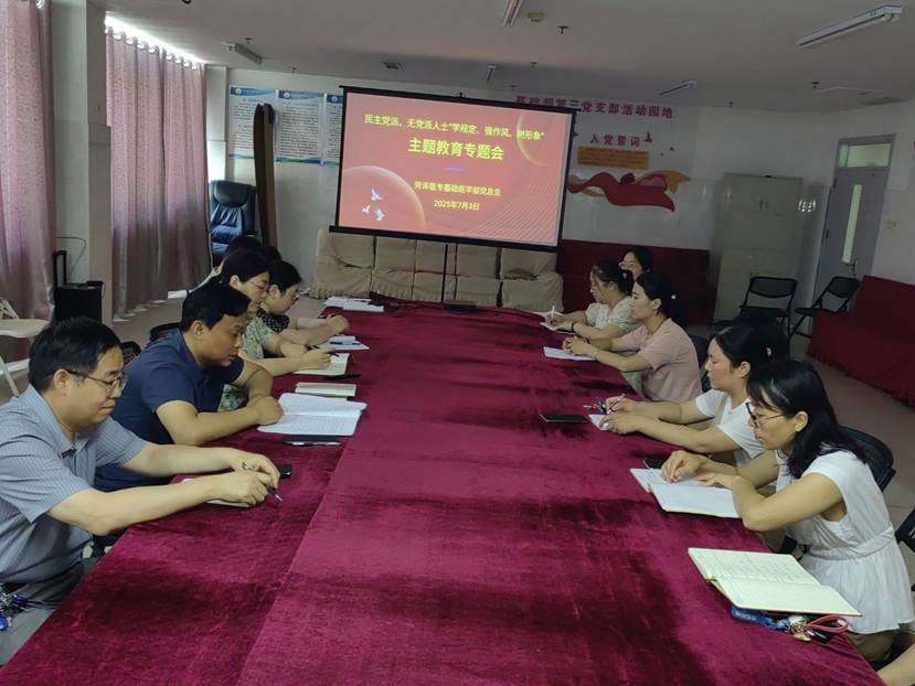 2025年7月3日,基础医学部党总支联合基础医学部民主党派、无党派人士在基础医学部会议室开展了“学规定、强作风、树形象”主题教育专题会。会议由基础医学部党总支副书记田凤娟主持,基础医学部民主党派人士、无党派人士及各党支部全体支委同志参会。