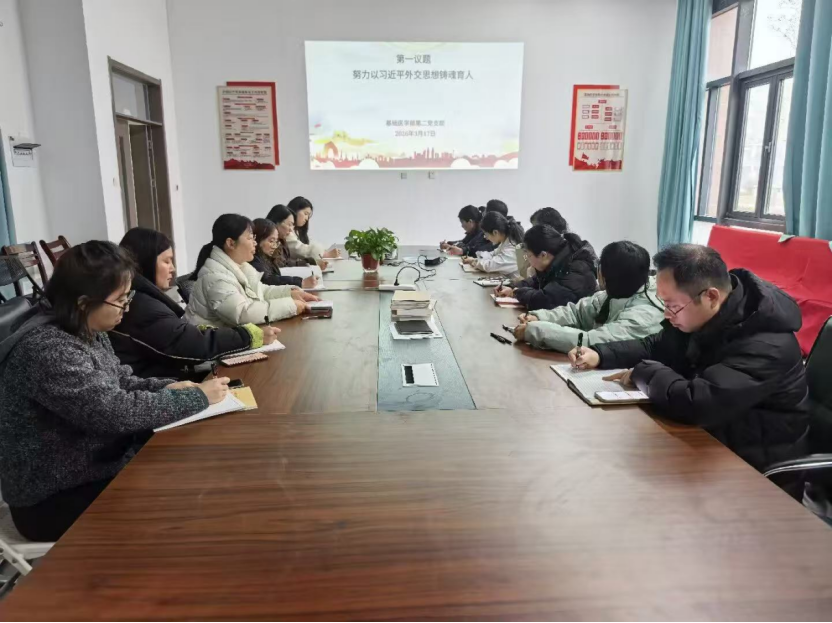 会议严格落实“第一议题” 制度,全体党员深入学习第一议题“以习近平外交思想铸魂育人”,深刻领会中国特色大国外交的核心要义与实践要求,引导党员教师立足医学教育岗位,践行外交思想、讲好中国故事,切实把思想和行动统一到党中央对外工作决策部署上来,以科学理论引领铸魂育人工作。