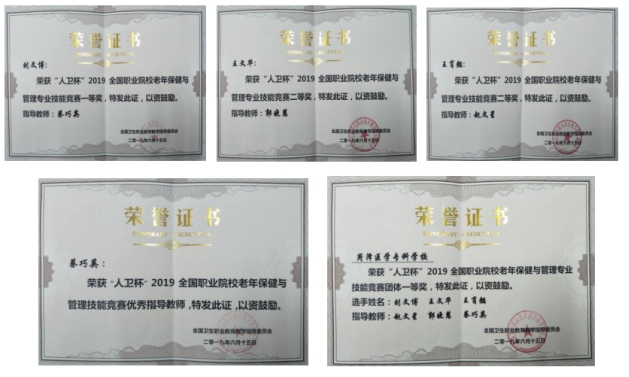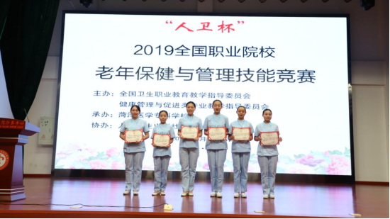 2019年6月15日,“人卫杯”2019全国职业院校老年保健与管理技能竞赛在我校附属医院成功举办。此次大赛由全国卫生职业教育教学指导委员会健康管理与促进类专业教学指导委员会主办,人民卫生出版社协办,我校承办。来自全国7个省、直辖市的9所院校、27名选手参加了比赛。全国卫生职业教育教学指导委员会主任沈彬教授,全国卫生职业教育教学指导委员会健康管理促进类专业指导委员会主任委员任光圆教授,人民卫生出版社编审白桦,我校党委书记于洲声、校长顾润国等出席竞赛开幕式、闭幕式。