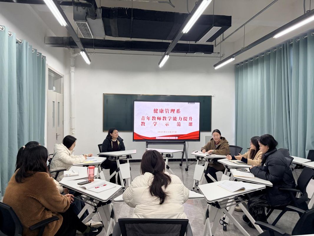 为深入落实学校青年教师常态化教学能力提升培养工作,助力青年教师专业成长,按照青年教师培养计划,健康管理系于11月27日成功举办了第二次青年教师教学能力提升教学示范课活动。本次活动由健康管理系主任石晓峰主持,全体青年教师参加。