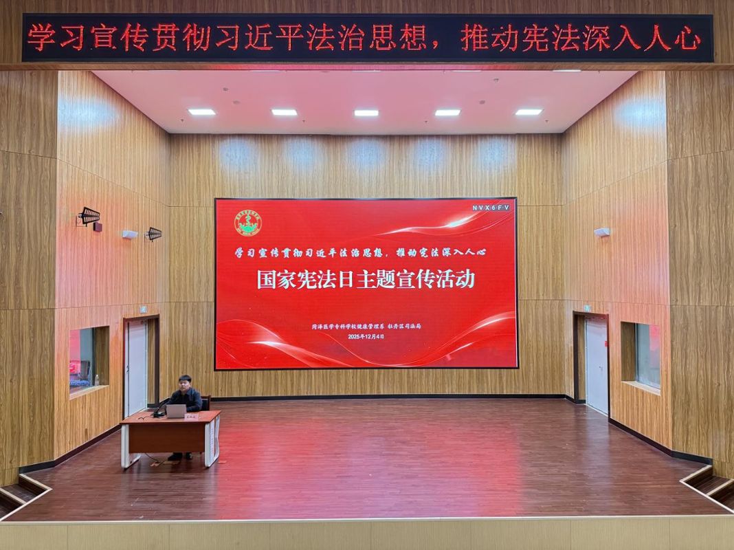 为深入学习贯彻习近平法治思想,进一步增强青年学生的宪法意识和法治观念。12月4日上午,菏泽医学专科学校健康管理系举办国家宪法日主题宣传活动。本次讲座邀请山岳盛律师事务所王双成律师担任主讲,健康管理系师生共计300余人参加活动,活动由健康管理系党总支书记李莹主持。