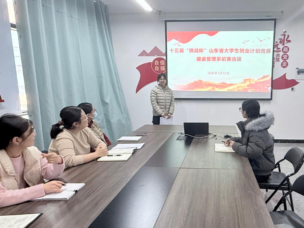 为深入贯彻创新驱动发展战略,锤炼健康管理系学生的创新创业思维。3月13日上午,健康管理系举办第十五届“挑战杯”山东省大学生创业计划竞赛系部初赛。本次活动由党总支书记李莹主持,特邀3 位优秀创新创业指导老师组成评委团队,各参赛项目团队全程参与。