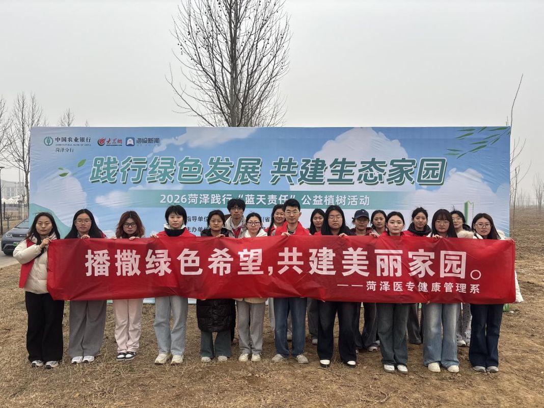 为深入贯彻落实党的二十届四中全会精神,进一步落实党建带团建,推动“一站式”学生社区建设。3月14日,健康管理系党总支组织“青马工程”培训班学员前往菏泽市七里河湿地公园,积极参与2026菏泽践行“蓝天责任”公益植树活动,以实际行动为生态菏泽建设贡献青春力量。