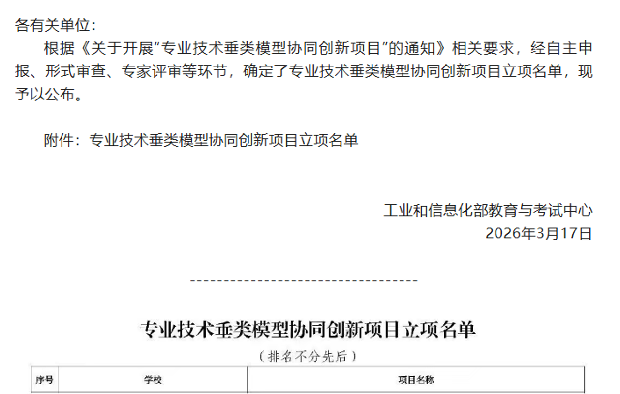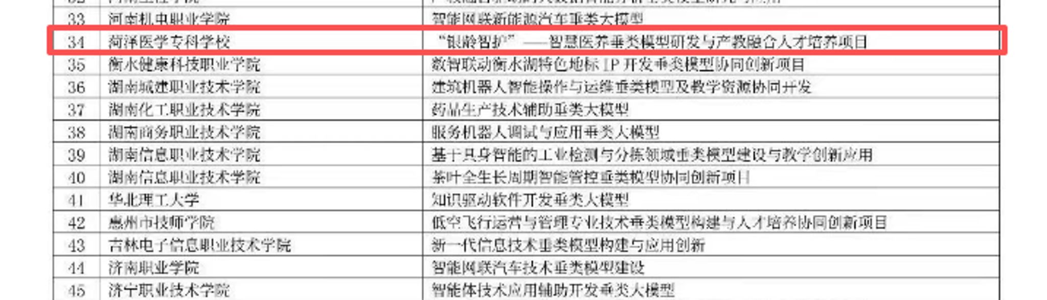 近日,工业和信息化部教育与考试中心发布《关于专业技术垂类模型协同创新项目立项结果的通知》,我校经过精心准备、认真筹划,申报的《“银龄智护”——智慧医养垂类模型研发与产教融合人才培养项目》成功获批立项,这是我校推进省“新双高”建设、深化产教融合取得的又一标志性成果。