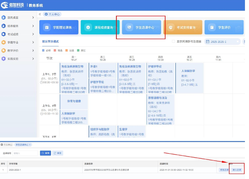 选课操作流程: