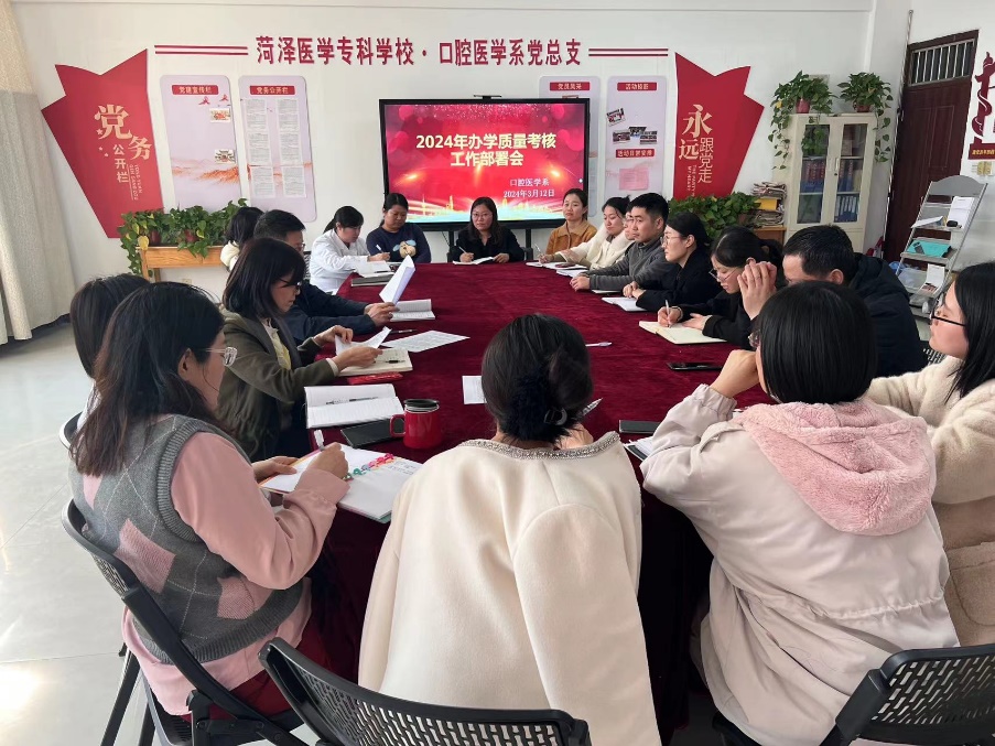 2023年是“十四五”规划执行落实、承上启下的关键之年,为全面贯彻落实党的二十大精神,扎实推进学校 “十四五”规划中期评估工作,进一步加快工作进度,口腔医学系于2024年3月12日下午在1号实验楼7405召开“十四五”规划中期检查和2024年工作部署会议,会议由系党总支书记司景方主持,系副主任张景华及全体口腔系教职工参加本次会议。