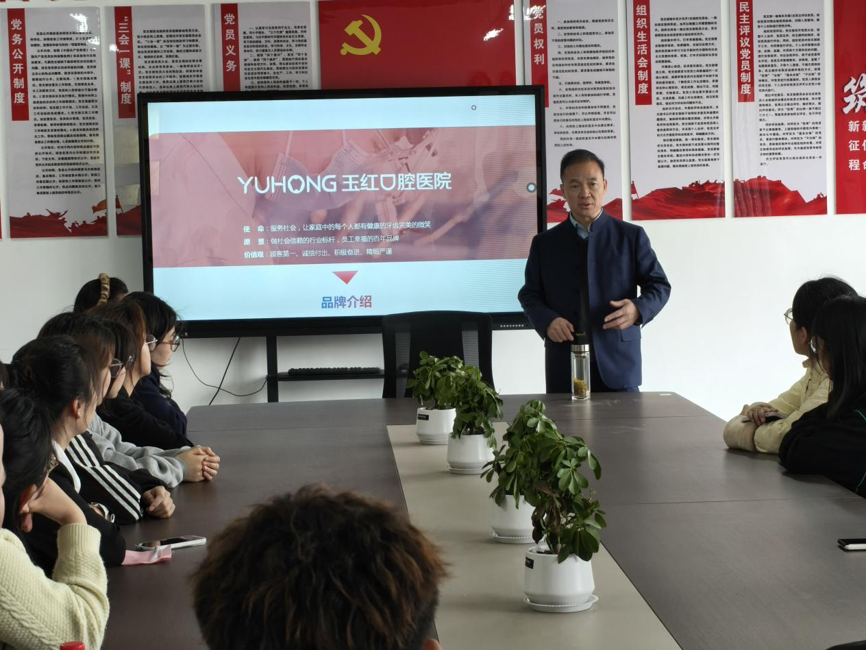宣讲会上,玉红口腔医院院长贾玉红围绕医院发展概况、人才队伍建设、诊疗特色、岗位需求、薪酬待遇、晋升空间及人才培养体系进行详细介绍,重点讲解了实习就业一体化、岗前培训、职业发展通道等同学们关心的内容,让大家对医院文化、岗位要求和就业前景有了全面认识。