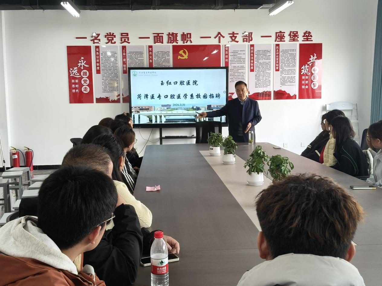 为扎实做好毕业生就业服务工作,搭建校企精准对接平台,助力毕业生高质量充分就业,3月31日,菏泽医学专科学校口腔医学系成功举办玉红口腔医院专场招聘宣讲会暨就业指导会。口腔医学系济宁生源共30余人参会。