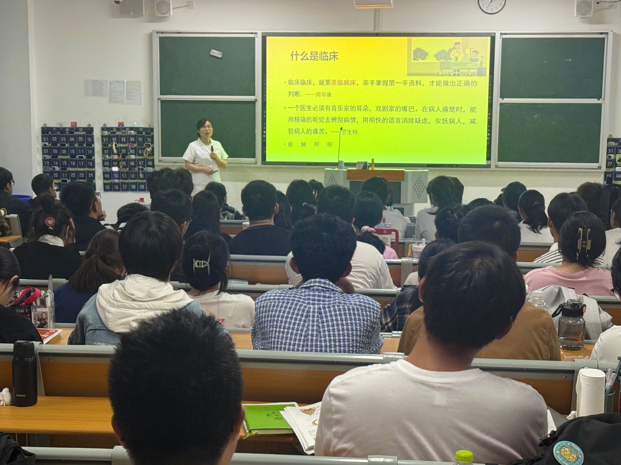 为帮助2025级临床医学专业新生增强专业认知、做好学业规划,9月16日至26日,临床医学系为五个合堂班级开展了专业认同教育讲座。活动特邀系党总支书记吴琪、系主任赵文星、副主任文兆峰、外科教研室主任孙全波、消化内科学专家庞淑珍分别深入班级,与新生进行面对面交流,分享医学感悟,助力职业启航。