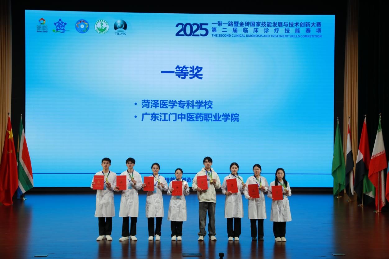 11月2日上午,2025一带一路暨金砖国家技能发展与技术创新大赛第二届临床诊疗技能赛项闭幕式在菏泽医学专科学校学术报告厅举行。金砖国家技能发展与技术创新大赛组委会代表、菏泽医学专科学校副校长郭树榜、赛项裁判长、仲裁长及各参赛院校领队、师生代表等共同出席闭幕式。闭幕式由菏泽医学专科学校临床医学系主任赵文星主持。