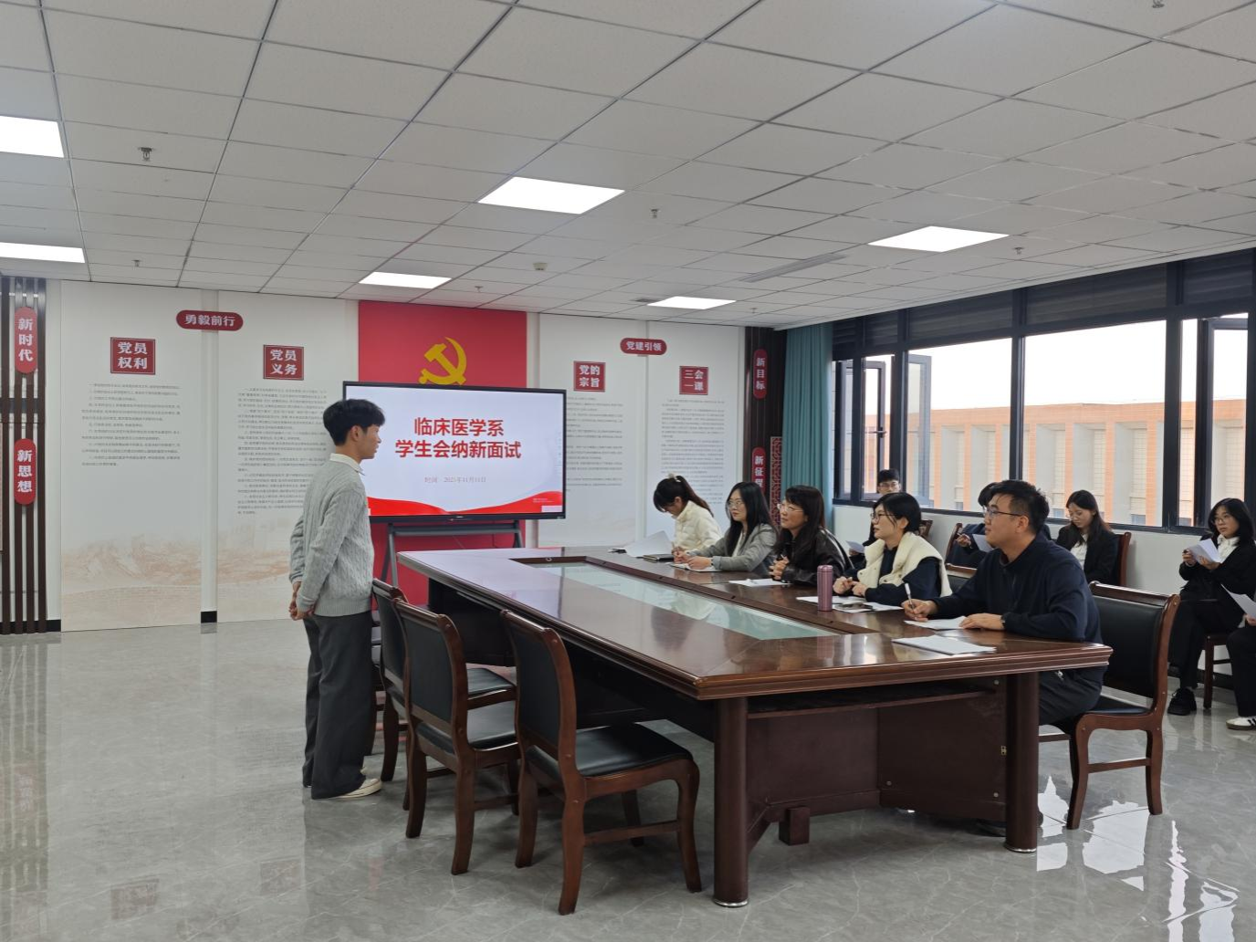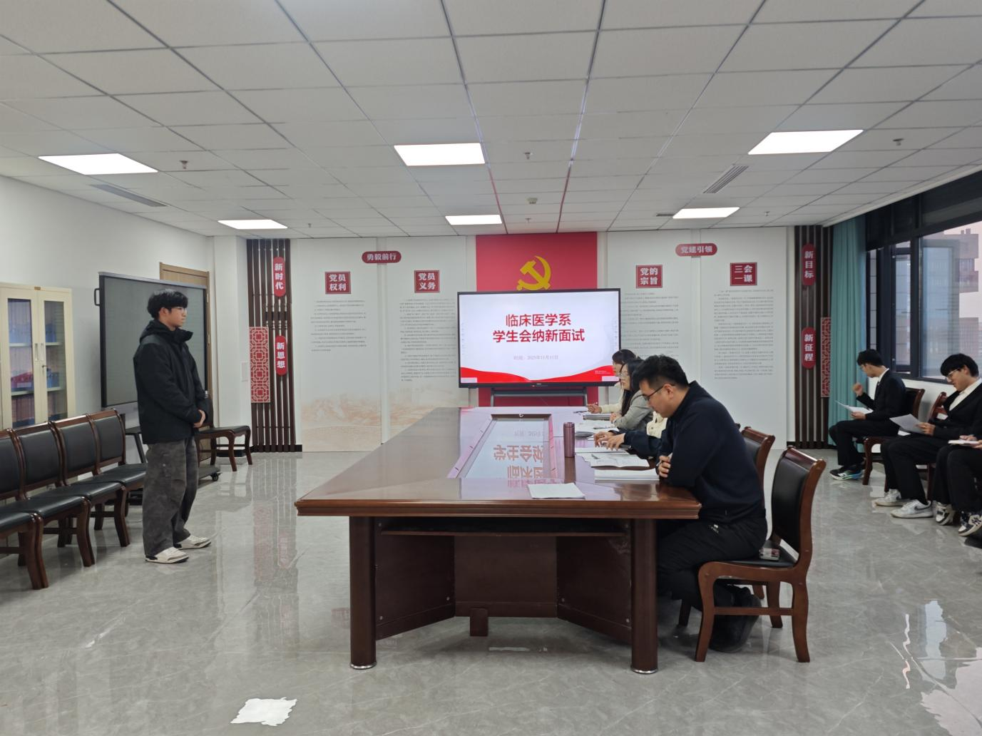 为强化学生骨干队伍建设,搭建优质成长实践平台,推动系部学生工作高质量发展,近日,临床医学系2025级学生会第二轮纳新面试在3号楼B座516室有序开展。本次面试聚焦选拔责任感强、创新潜力足、实践能力优的优秀学子,为学生会注入新鲜活力。