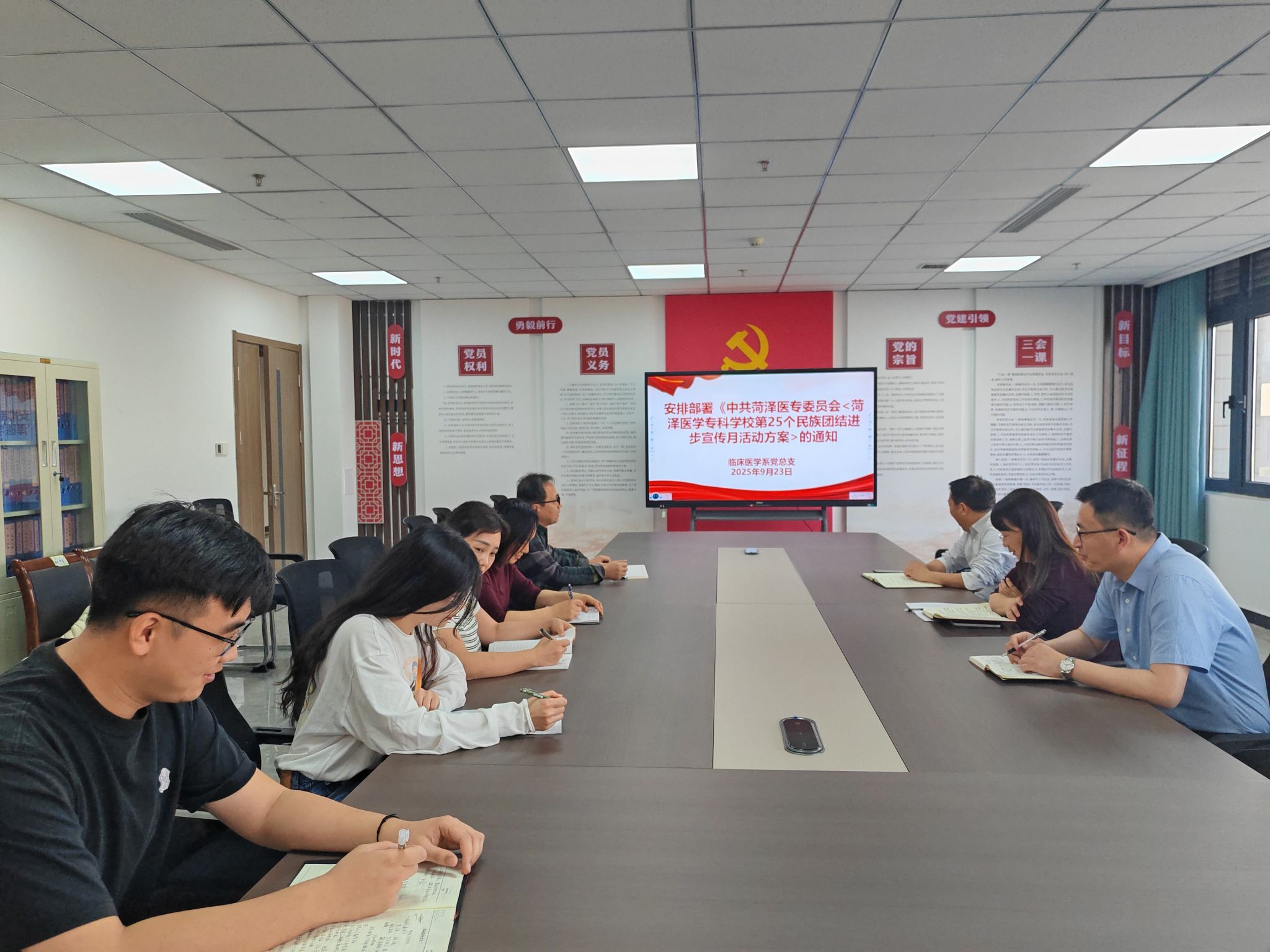 为深入学习贯彻习近平总书记关于加强和改进民族工作的重要思想,全面落实中央民族工作会议精神及学校党委关于民族团结进步工作的部署要求,扎实推进第 25 个民族团结进步宣传月活动落地见效,2025 年 9 月 23 日,临床医学系党总支召开专题会议,集中学习习近平总书记关于加强和改进民族工作的重要思想,系统安排《中共菏泽医专委员会关于印发 < 菏泽医学专科学校第 25 个民族团结进步宣传月活动方案 > 的通知》(菏医字〔2025〕52 号)落实工作。党总支书记吴琪主持会议。