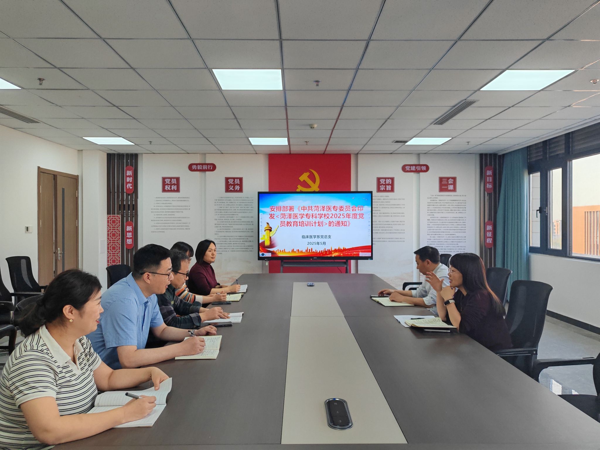 2025年5月12日,菏泽医学专科学校临床医学系党总支召开专题工作会议,深入学习并贯彻落实《中共菏泽医专委员会印发<菏泽医学专科学校2025年度党员教育培训计划>的通知》(菏医字〔2025〕52号)文件精神。会议在全面传达部署学校党委整体工作要求的基础上,紧密结合临床医学系工作实际,于当日研究制定并通过了《临床医学系党总支2025年度党员教育培训计划》。