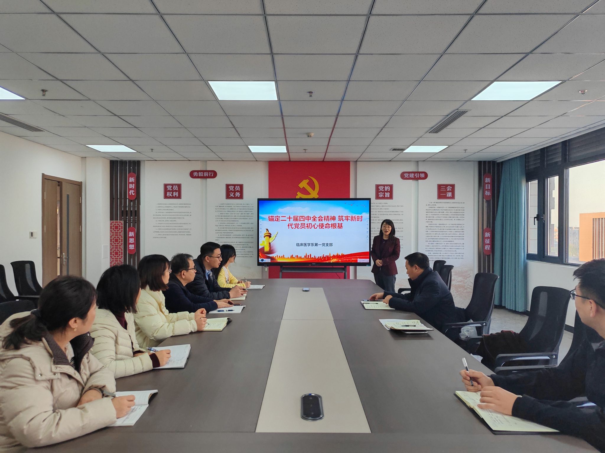 12月11日,临床医学系第一党支部在3B516党员活动室召开专题党课学习会。本次党课以“锚定二十届四中全会精神 筑牢新时代党员初心使命根基”为主题,由临床医学系党总支书记兼第一党支部书记吴琪主讲,支部全体党员参加了学习。