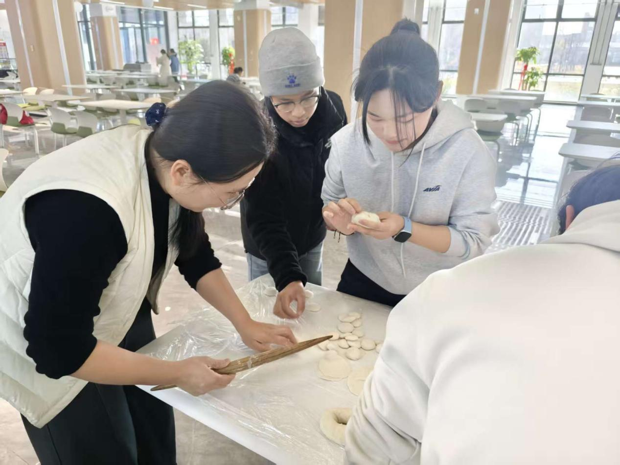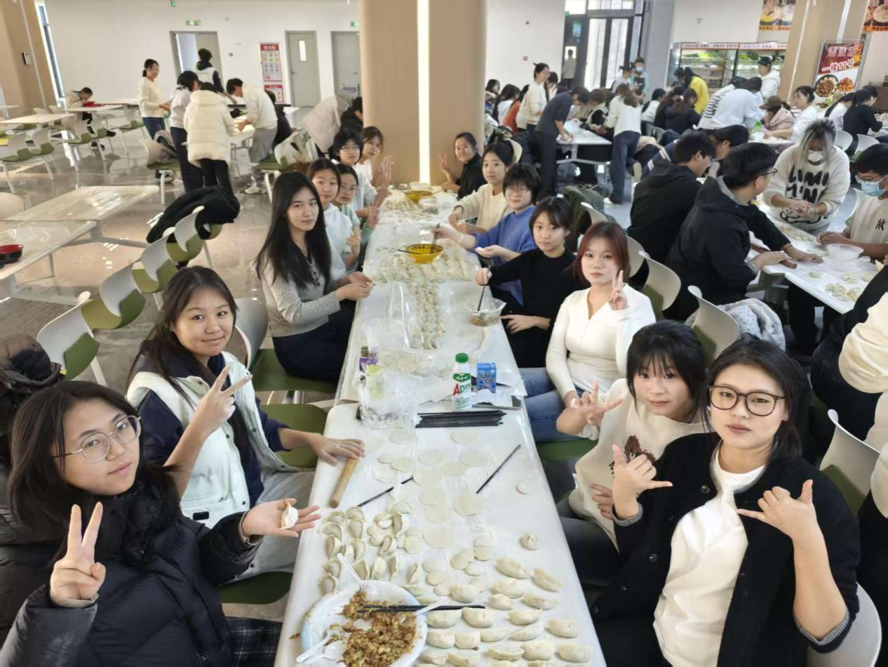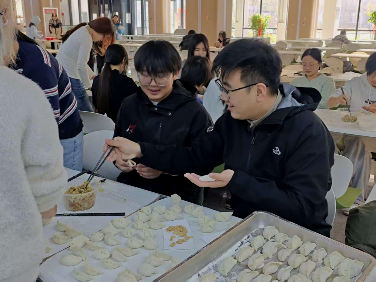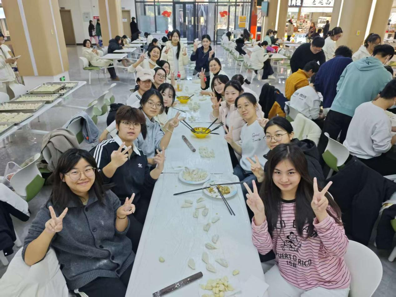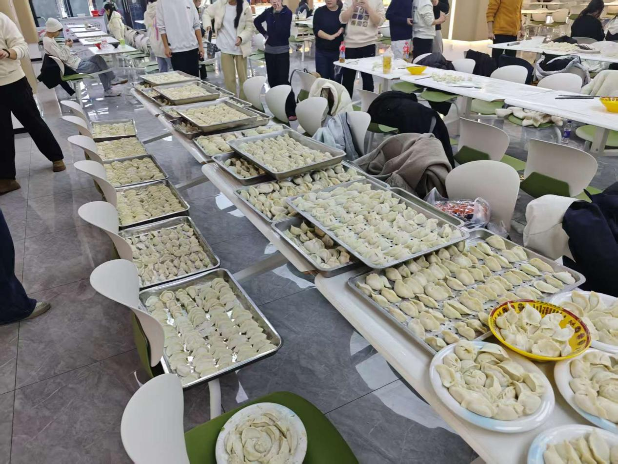 活动开始前,师生们共同筹备、分工协作,从食材采购到场地布置,井然有序。活动中,同学们分组配合,揉面、擀皮、包馅,各展所长。动作娴熟的同学包出饱满匀称的饺子,富有创意的同学则捏出形态各异的造型,展现出无限的想象力与团队默契。老师们也热情融入,与同学们亲切交流、共同劳动,活动现场欢声笑语不断,洋溢着浓浓的师生情谊和集体温暖。