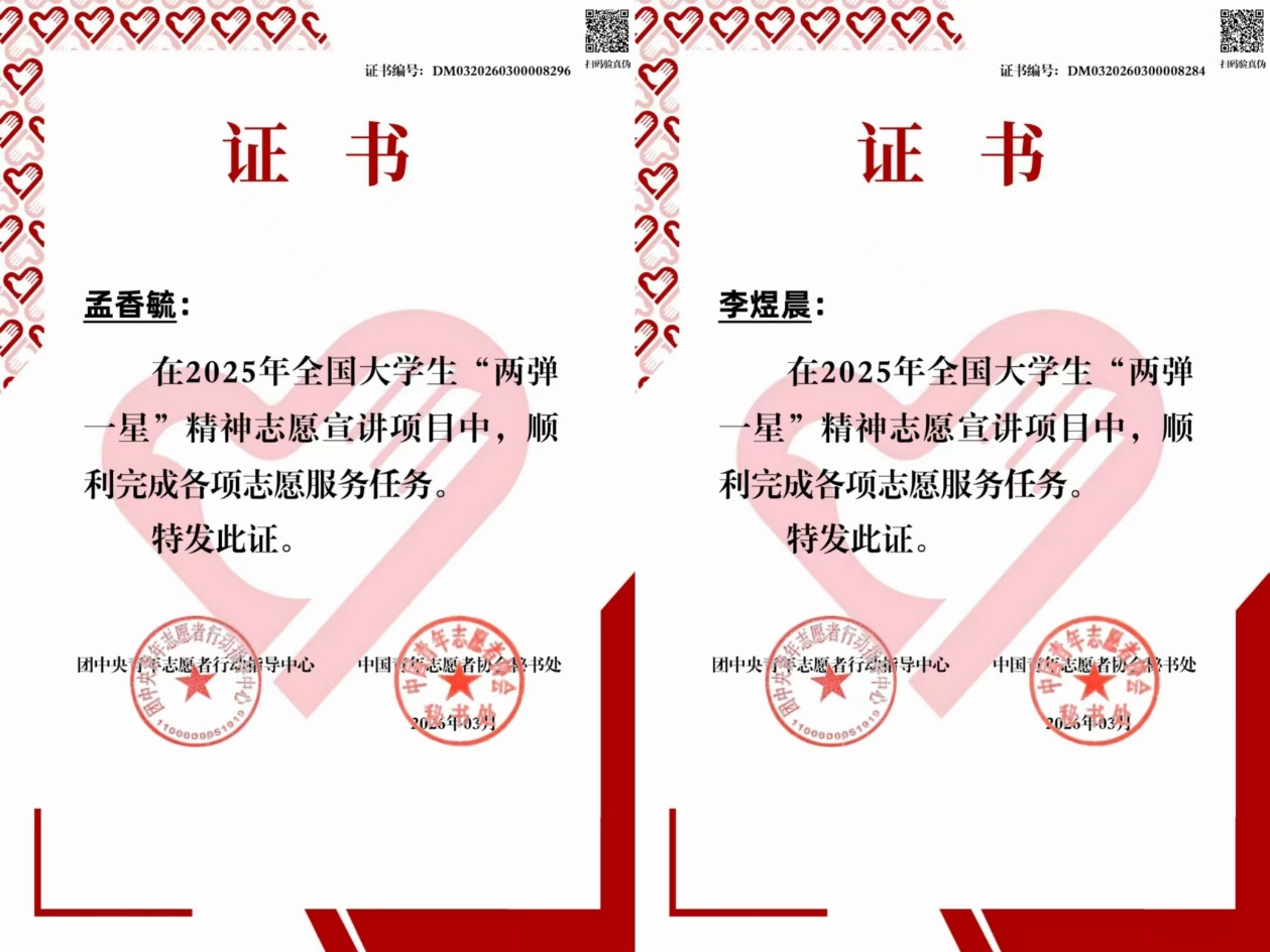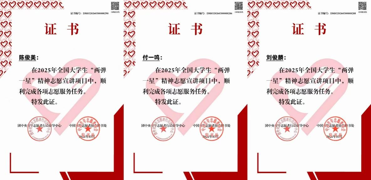 近日,临床医学系红色筑梦宣讲团圆满完成“两弹一星”精神志愿宣讲任务,11名宣讲团成员全部获颁荣誉证书。
