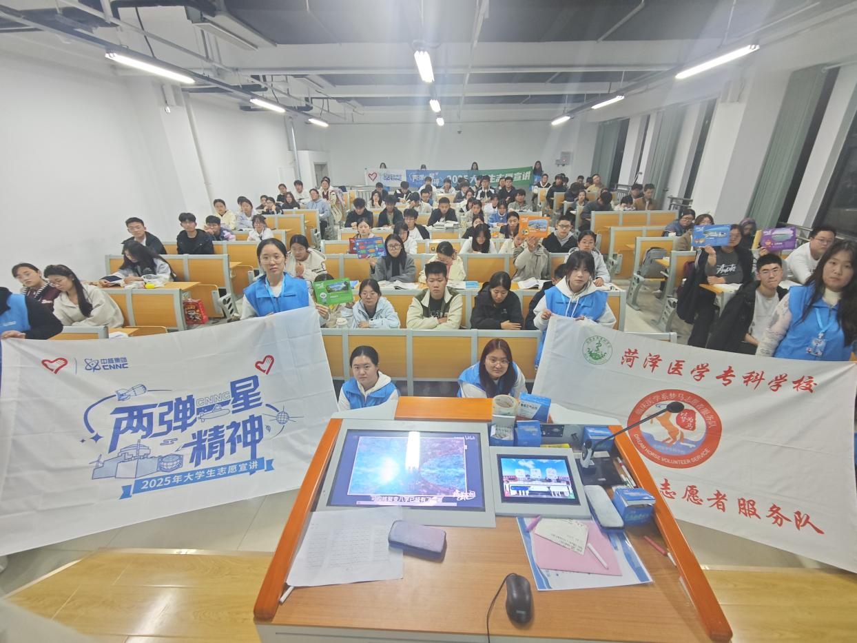 为传承“两弹一星”精神内核,打破公众对核技术的认知壁垒。近日,菏泽医学专科学校临床医学系梦马志愿者服务队红色筑梦宣讲团于2025年10月17日走进25级药检系药品生产1.2.3合堂和临床医学系5.6班合堂教室,开展了以“核技铸魂·民生赋能”为主题的宣讲活动。